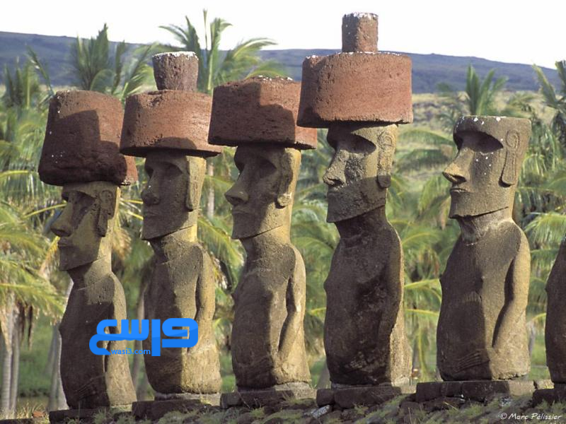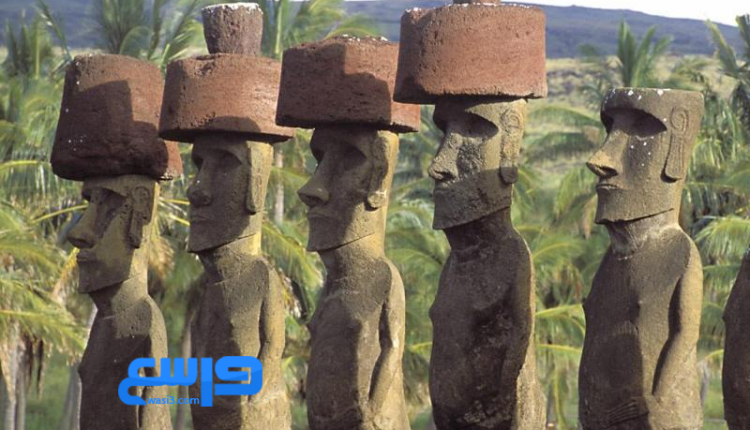 تشتهر الجزيرة بتماثيلها الهائلة التي نحتها السكان الأصليون وأقاموها على مصاطب .. يبلغ طول بعضها نحو 12 متراً، وتسمى (موائي) ويصل عددها إلى حوالي 600 تمثال.. تدل هذه التماثيل وما حولها من حوائط ومعابد قديمة أن جزيرة ايستر كانت معمورة بأناس تميزوا بمهارة فائقة في البناء باستخدام الأحجار وتكشف عن حضارة عريقة شادت تلك المنطقة.