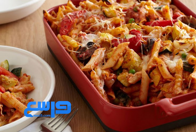 طاجن المكرونة بالخضر واللحم