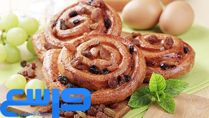 (205) كوب من الدقيق العادي _ ( رشة ) ملح _ ( ثلث كوب ) من الحليب _ ( نصف كوب من الزبدة (3) ملاعق صغيرة من حبيبات الخميرة _ ( كوب ) من السكر _ بيضتان _ ( نصف كوب ) من الزبيب (3) ملاعق طعام من مسحوق القرفة _ نصف كوب من الجوز المفروم ناعماً .